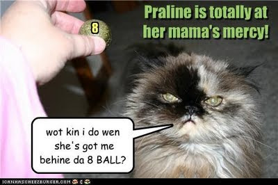 Wendy had a wonderful way of showing Sweet Praline's diva attitude on the LOL-Spot blog. I thought I'd share those with you again in hopes that they'll bring a smile to your face as we remember Sweet Praline. Thank you, Wendy!