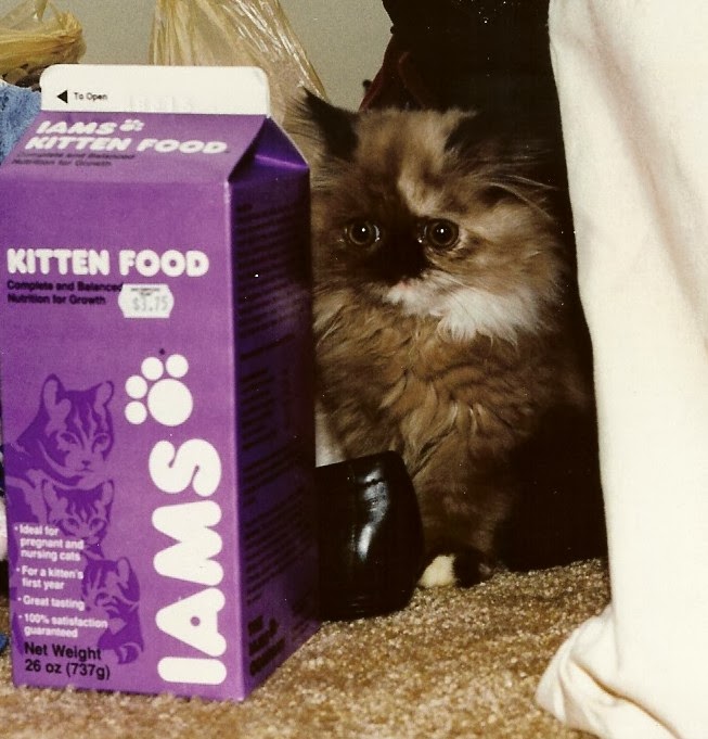 Here is our first official portrait together. I had a nice Canon AE-1 camera that had a timer on it and was able to set it and jump in front of the camera with Sweet Praline in my arms. All of my pictures of the two of us together were with a timer on a camera because it was just the two of us for almost 16 years.
